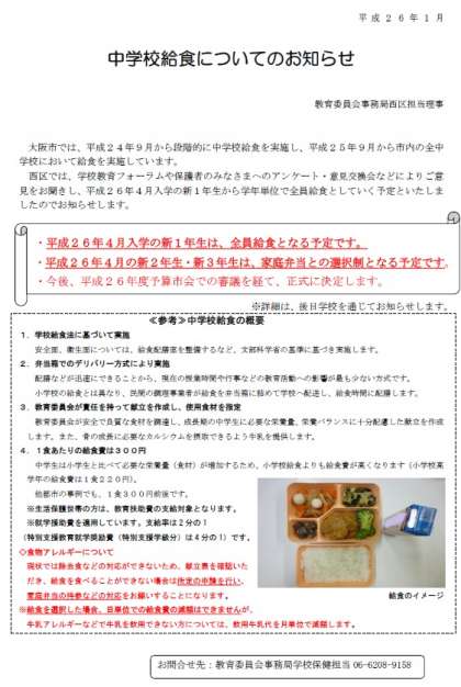 4月から新1年生は全員給食となる予定です。新2、3年生はこれまでと同様に選択制となる予定です。