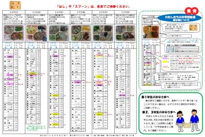 ◎給食の4月分献立表を配布します。今までの献立表とは変更があります。