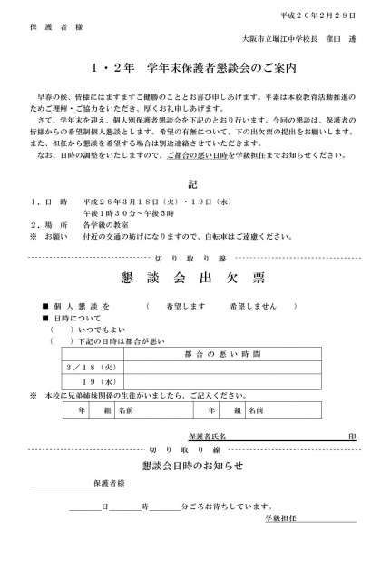 ◎28日に学年末懇談会の案内を配布しています。今回の懇談は希望制になります。よろしくお願いいたします。
