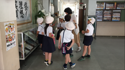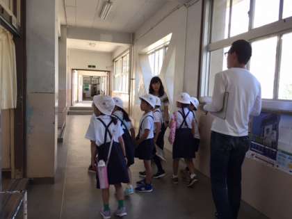 6月14日(水)日吉小学校の2年生の皆さんが、堀江中学校に約7〜8人ずつの3つのグループが探検にやってきました。興味津々の様子で静かに校舎を巡り、たくさんの質問もしてくれました。あいさつも上手にできて、とってもお行儀がよく、教室の横を通ったときは、中学生のみんなも思わず笑みがこぼれていました。