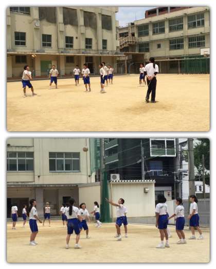 体育館では奥野先生による2-3の体育の授業、運動場では藤田先生による2-2の体育の授業が行われました。バレーボールのパスやサーブ練習の様子です。みんな一生懸命に頑張ってました。