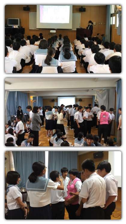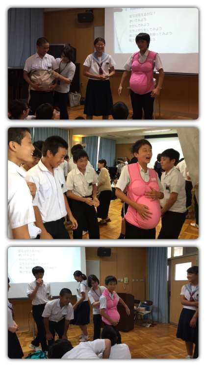 7月6日(木)5・6限、西区の保健師の方に講師としてお越しいただき、「プレパパママ教室」を「命の大切さを考えよう」というテーマで行いました。講話と妊婦体験で進めていただきました。妊婦体験では、あちこちで盛り上がり笑いも起こっていましたが、妊婦の大変さも実感できたと思います。