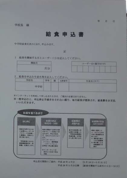 「給食申込書」(配布文書にもいれています。)