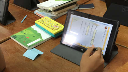 7月14日(金)2年生の国語の授業で、清少納言の「枕草子」を学習しています。今日は、一人一人がタブレットを使って、枕草子の第一段を覚えています。