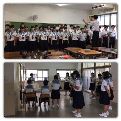 ※写真は、3年学年合唱、2年3組と2年2組、3年3組と3年1組の練習状況です。