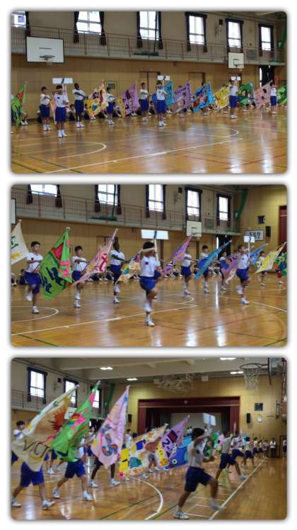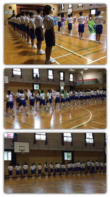 10月13日(金)中間テストが終了し、体育大会の開会式・閉会式で基準になる生徒の練習が行われました。国旗・校旗を持つ生徒会役員、学級旗やプラカードを持つ体育委員、大阪市旗・生徒会旗を持つ3年男女委員長、さらに各列の先頭者が集合し、隊形や行進の練習をしました。美しく引き締まった式が開催できるように、何度も練習を重ね、気持ちを一つに気合を入れる度に格好良く揃い出しました。