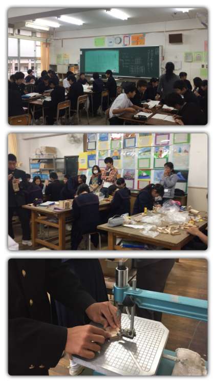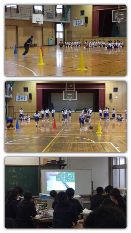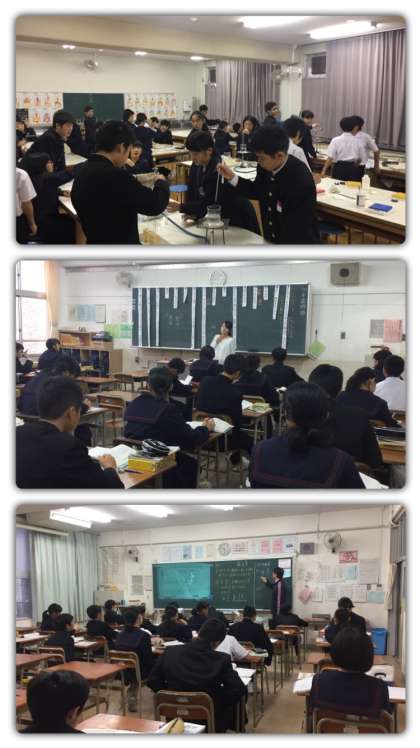 写真は上から1-4理科、2-2国語、1-1数学、2-4国語・美術、2-3体育・技術の授業の様子です。