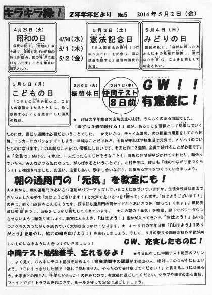 2年生学年だより(5月2日)