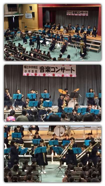 11月11日(土)午後2時より、堀江中学校区小中合同音楽コンサートが、堀江中学校元気アップ事業の主催で実施されました。