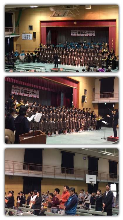 第3ステージは、堀江小中学校合同演奏ということで、堀江中学校吹奏楽部の伴奏に合わせて堀江小学校の皆さんが歌を披露しました。