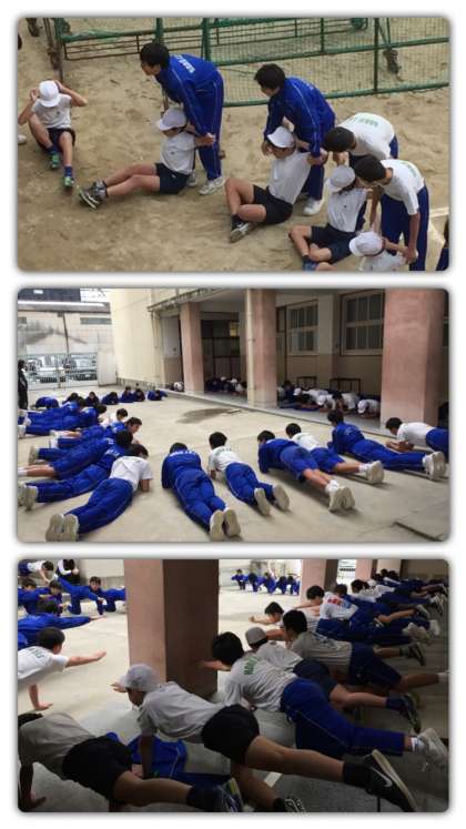 水泳部のシーズンオフの練習は、夏に向けてひたすらガンガン筋トレ中心?の練習をしています。卓球部は体育館と多目的室の両方を活用し練習しています。