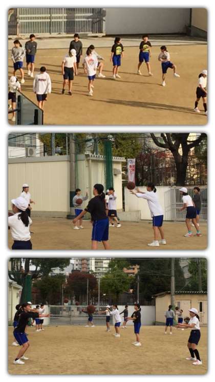 写真は女子バスケット部、野球部、陸上部の様子です。とても上手な小学生もいて、内心びびっている中学生もいたようです?!小学生の皆さんは、中学生の指示をしっかりと聞いて頑張っていました。
