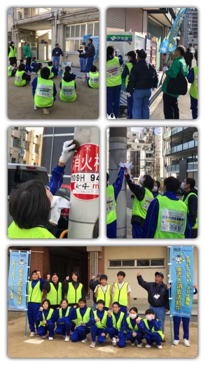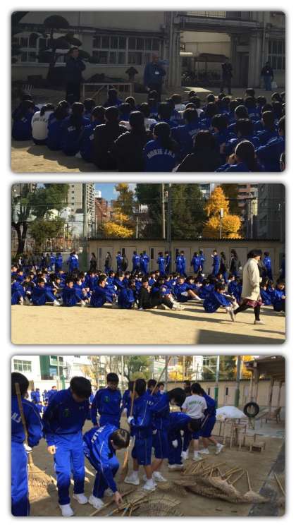 12月6日(水)午後、2年生は、落書き消し、千日前通北側歩道、ドーム前川沿い、日吉公園、新町北公園、堀江公園、南堀江公園の7箇所に分かれて地域清掃を行いました。どの場所でも地域の人とともに一生懸命に掃除をしていました。この時期、落葉がとてつもない量で、いっぱいに詰めたゴミ袋が何十個にもなったところもありました。2年生の皆さんの働きで地域の方々も「とても助かりました」と喜んでいただきました。