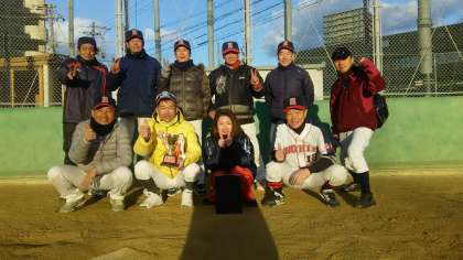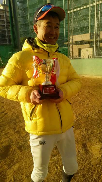 寒い風が吹く中、12月17日の日曜日、PTA五校園対抗のソフトボール大会が行われ、前回大会に続いて堀江中学校が優勝しました。1回戦は日吉小学校に12対11でサヨナラ勝ち。決勝戦は堀江小学校に5対4で勝利しました。カップを手にしているのは、優勝監督の西橋さんです。おめでとうございます!