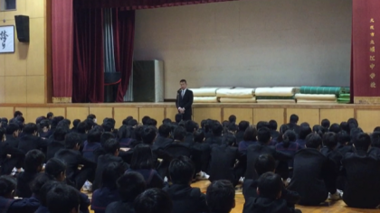 生徒指導主事の三好先生からは、「2学期は本当に行事はよく頑張った。しかし、授業ではしっかり取り組めていたのか?自分にされていやなことを人にしていなかったか?を振り返ってほしい」というお話でした。さらに、冬休みの生活について、次の4点を特に注意されました。