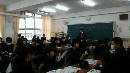 1月17日(水)5時間目 2年生は税理士及び西税務署の方にお越しいただき、各クラスで租税教室を実施しました。税のしくみや使い道、くらしと税についてなど、多くのことを学ぶことができました。社会科の時間に事前学習をしてあらかじめ質問も考えました。