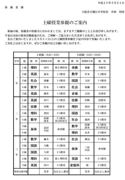 土曜参観のご案内(5月22日)