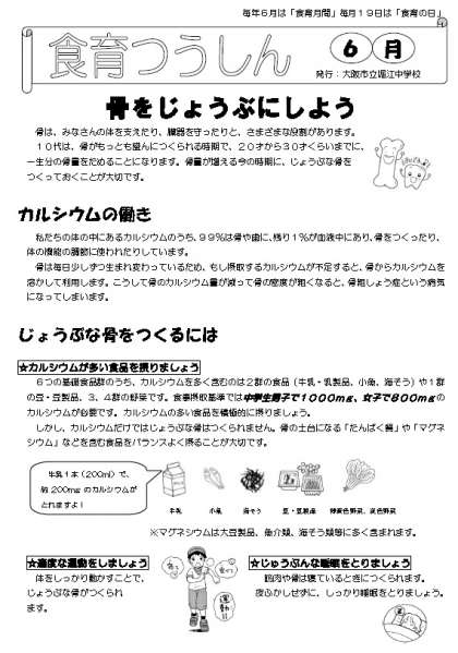 本日、「食育通信6月号」を配布いたします。