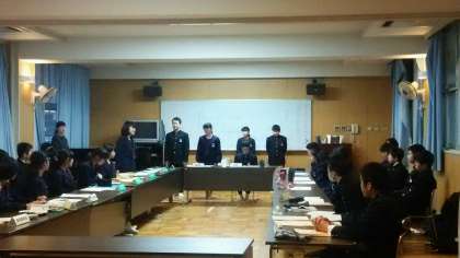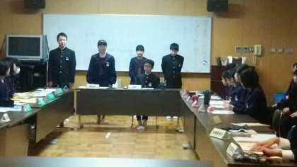 第5回目の生徒議会を開きました。今回は、卒業を目前にした3年生は対象とせず、1・2年生だけで行いました。平成29年度の締めくくりの生徒議会のため、各学級・各委員会・生徒会の今年度や後期の反省をもとに、これからや新年度に向けた話し合いとなりました。