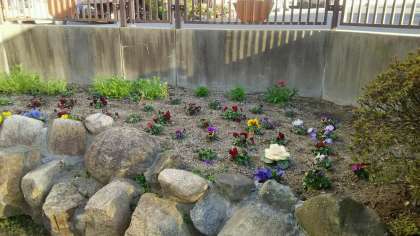 写真は、学校の敷地の南東かどにある改修した花壇の様子です。暖かい日と寒い日が交互に訪れますが、春は確実に近づいています。体調をくずさないよう気をつけてください。