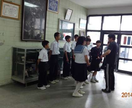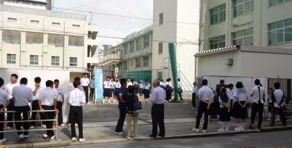 ◎2枚目は毎朝、クラスの委員長が一日の連絡を聞くために集合しているところです。