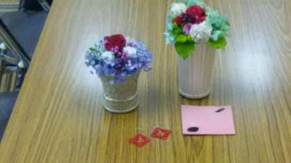 本日3月16日(金)9時半より、PTA成人教育主催による手芸活動〜第5弾〜が行われました。前回に引き続き、各自が作りたいものを作るというスタイルで、フラワーアレンジ、リース、ミニバッグなど、お手軽キットで小物を作り楽しみました。