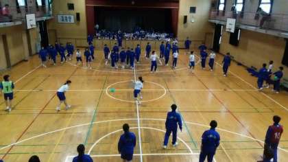 3月20日(火)朝からあいにくのお天気のため、2年スポーツ大会は体育館で行いました。各クラスで目標を決め、ドッジボール競技と応援に一生懸命取組みました。体育館のセンターラインで男女に分け同時並行で試合を進めました。