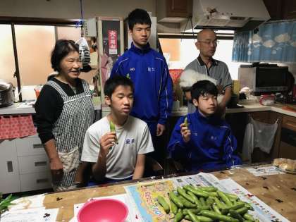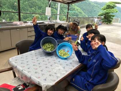 農作物の収穫をしました。先生たちは手分けして、それぞれの民家を回っています。みんな楽しく一生懸命に活動しています。