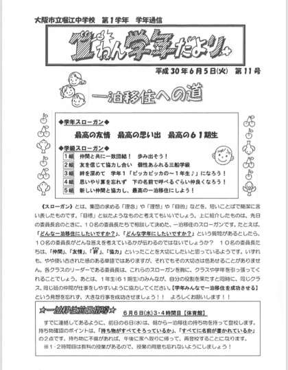 1年 学年だより 第11号発行