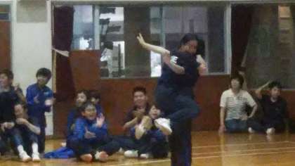 なかなか決着がつかないので、ルールを変更して、手をあげたり、足をあげたりの工夫をしました。