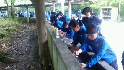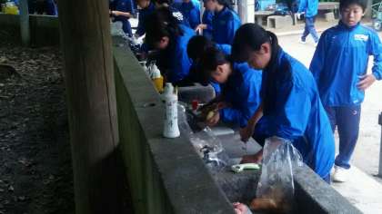 いよいよ待ちに待った野外炊飯、カレーづくりの開始です。みんなで協力して美味しいカレーを作りましょう。