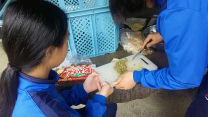鶏肉がけっこう切れにくいです。カレーのルーもこまかくきざんでいます。