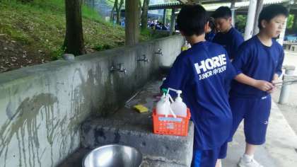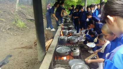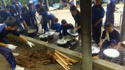 炊き上がりまでもう少し。並行して洗い物もやり、役割分担もうまくいってます。