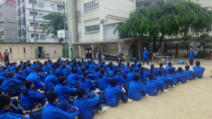 帰校式は、小西副校長の話と、2組の村尾君の司会と生徒代表の畠中さんが進行し、あいさつをしました。