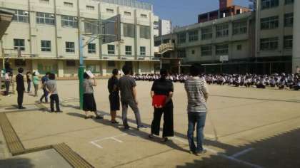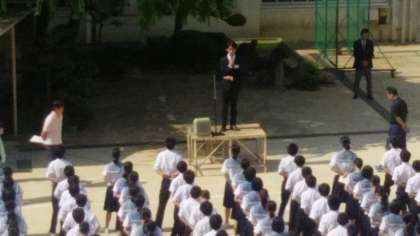 最後に、次回全校集会の集合隊形について連絡があり全校集会を終了しました。