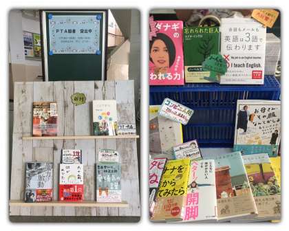 本日7月11日より懇談会期間中の18日まで、PTA図書委員の皆さんによるPTA図書の貸し出しを玄関で行っています。懇談会の帰りにでもお立ち寄りください。お待ちしております。