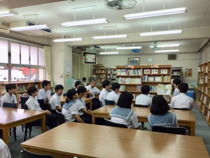9月12日(水)午後1時より図書室にて、今年度第3回目のおはなし会を行いました。本日はイツメンと少し入れ替わりもあり、始めは少なかったのですが次第に人数も多くなって、いつの間にかお話に聴き入っていました。「しろいうさぎとくろいうさぎ」というアメリカの絵本で、ほっこりと心が温まるようなお話でした。学校図書館補助員の森田さんからは、絵本の次に、吉野弘さんの「祝婚歌」という詩を朗読していただき、とても気持ちが豊かになりました。ありがとうございました。