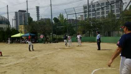 先発ピッチャーは、もちろんエースでキャプテンの阪本さん。強力打線の西船場小学校を相手に、ヒットらしいヒットも許さず3回を1点でしのぎ、一度は田代さんのタイムリーヒットなどで逆転しました。