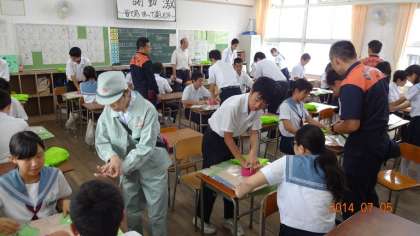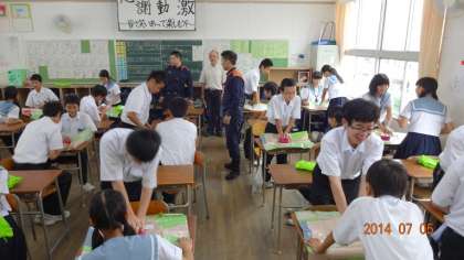 2年生は、消防署からたくさんの方に来ていただき、防災や救急救命について学習しました。