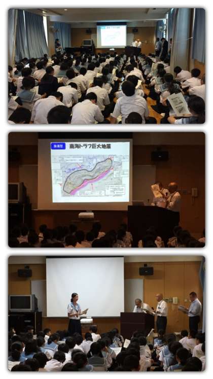 ごあいさつの後、はじめに防災についての資料を見ながら説明を受けました。今後必ず起こるといわれている東南海地震についてもレクチャーしていただきました。