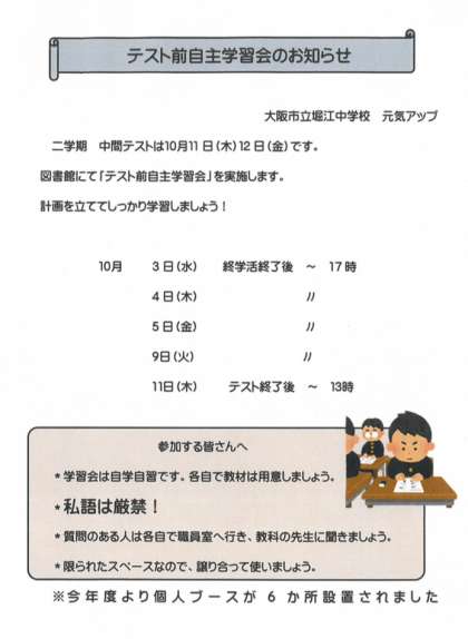 10/4 テスト前自主学習学習会
