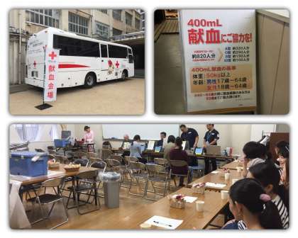 保護者・地域の皆さまにご連絡いたします。本日、堀江中学校で下記の時間帯で献血を行っています。この機会に皆さまのご協力をお願いいたします。