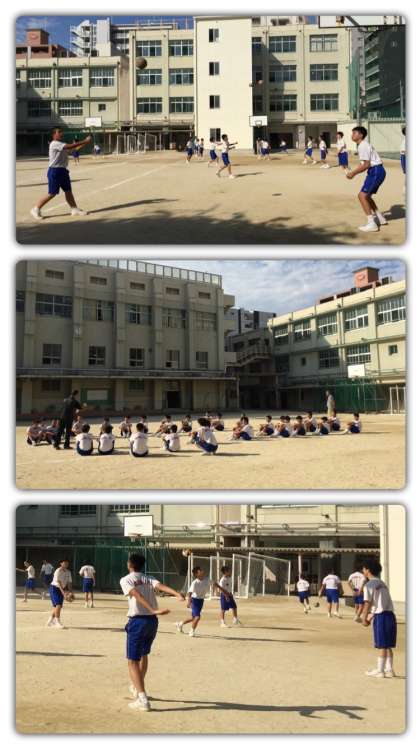 体育大会が終了し、体育の授業も新しい種目に入りました。2年生男子は球技種目のバレーボールの授業を行っています。バレーボールのトスやレシーブの基礎基本を習得するために、三好先生から上手くできるコツも教えてもらって、楽しく元気に活動しています。写真は4・5組の様子です。