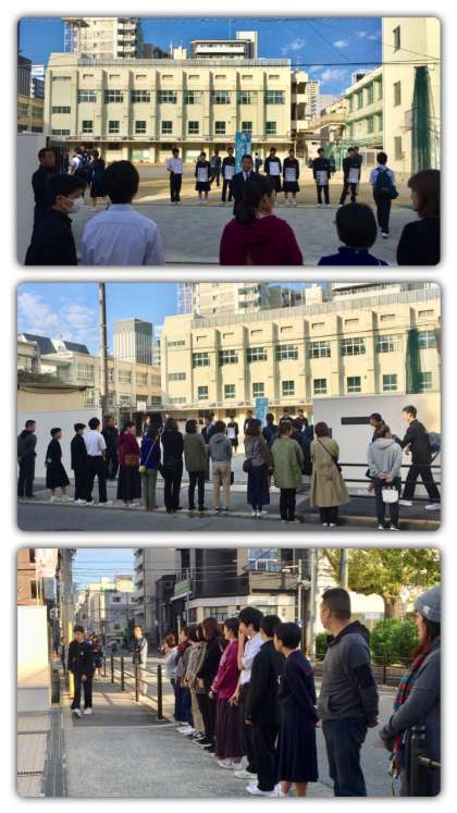 毎週火曜日はPTA実行委員さんとともにあいさつ運動をしています。11月13日までは成人教育委員さんと図書委員さん、11月20日から12月18日までは3学年委員さんと企画委員さんが一緒に活動しています。