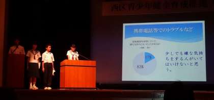 その後、西区3中学校の生徒会が各校の取り組みなどを報告しました。