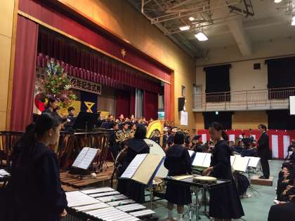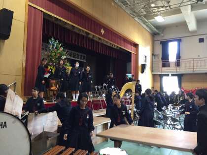 舞台転換におけるヒナ壇の設置には、前々日から何回も何回も吹奏楽部の生徒が練習に練習を重ねてよく頑張りました。傍で見ている人々もびっくりでした。