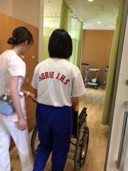 イオンさんでは買い物をしているのではありません。注文のあった商品を消費者さんに代わって選んでいます。日新会病院さんではデイケアのご利用者さんと一緒に運動あそびをしています。日生病院では患者さんを移動させるお手伝いを体験しました。