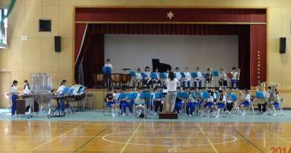 吹奏楽部は明日のコンクールに向けて体育館でリハーサルを行いました。