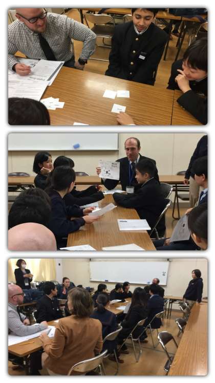 12月19日(水)午後1時半より、西区の英語事業の「英語コミュニケーション講座」を昨日に引き続き第2回目を実施しました。「サンキュー」と「ハロー」しか言えなくても大丈夫!人とのコミュニケーションを楽しんでみようという気持ちがあればOK!飛び入りで新たなメンバーも加わって益々盛り上がり、たくさん英語を聞いて英語を考えたり、しゃべったりすることができました。周りに見ている先生たちも、いつの間にかその楽しい雰囲気に同化して、生徒たちと一緒に参加したつもりになりました。