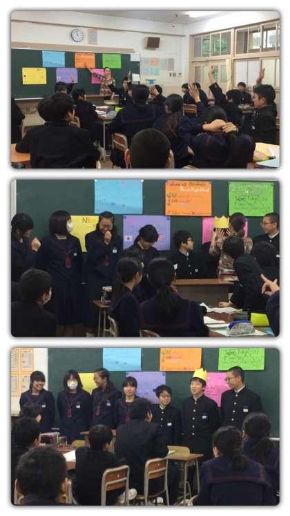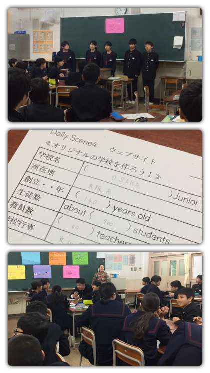 2学期の授業も最終回を迎えています。1年生の英語の授業を少し参観しました。クラスのみんながコミュニケーションを図りながら生き生きと活動していたのが印象的です。今日は「オリジナルの学校を作ろう!」というテーマで班ごとに考え、英語で発表しました。